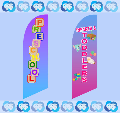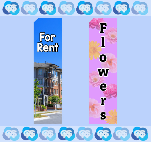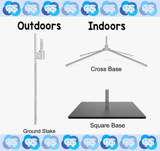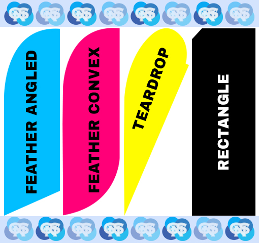 Advertising flags for events, both inside and outside. Four styles and three bases to fit your business.