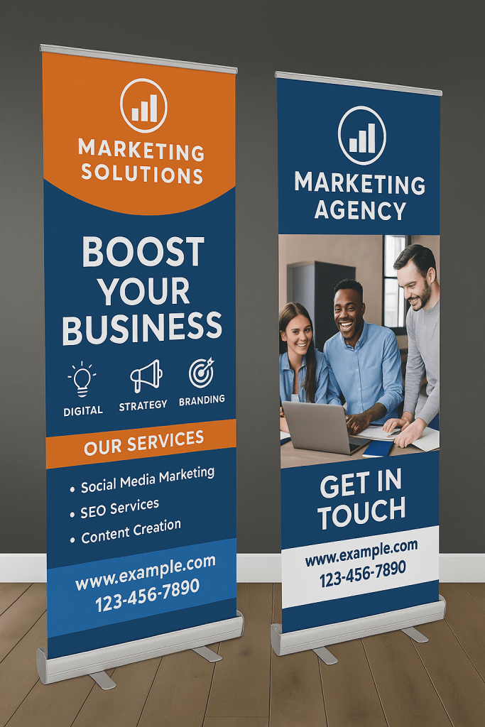 Perfect for trade shows, events, storefronts, and presentations—our retractable banners help you showcase your brand or message with style and ease.